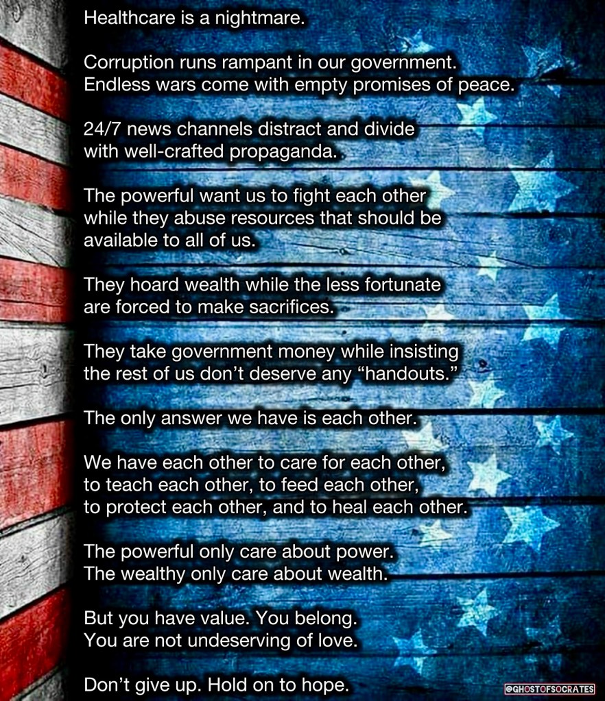 We must push back against the false claims of the administration. Contact our elected officials with our concerns. Volunteer to help those in need. Use social media efficiently to convey the message. Support activist organizations and independent media. And, especially for white people like me, listen to the thoughts and concerns of people who are different than us, who have experiences we cannot understand fully, and who have perspectives gained through a struggle we’ve never had to endure.