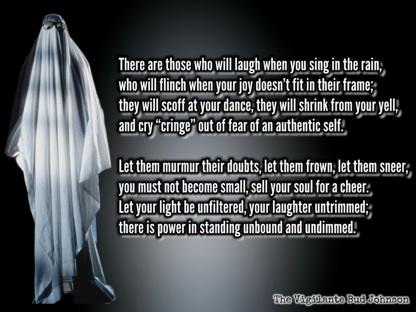 Don’t be afraid to be yourself. Write, make music, sing, dance, post a TikTok, play a sport, bake cakes… express yourself how you want, in a way that conveys your authentic self and makes you happy. If you’re not harming anyone and you’re enjoying your life the best you can, then forget the haters. Their words say more about them than they say about you.